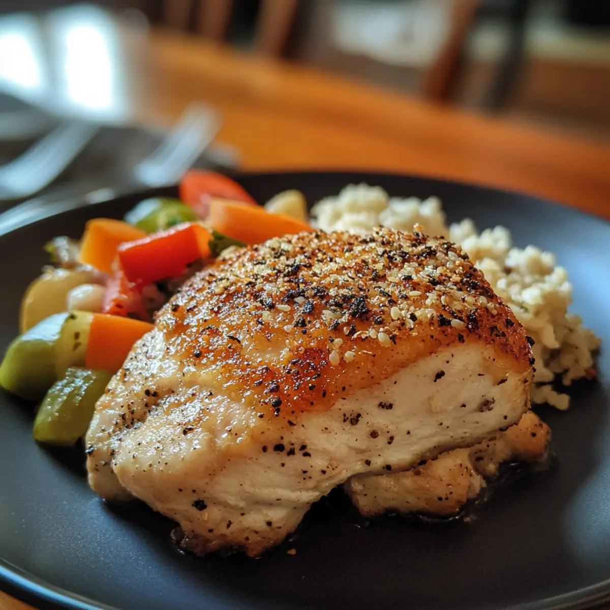 Seasonal Roasted Vegetables: Bright, caramelized veggies add a pop of color and a balance of sweetness to the savory chicken, creating a visually stunning and nutritious plate.