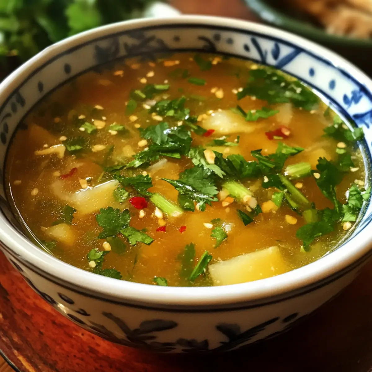 - Fresh shrimp or chicken – Lightly cooked proteins that soak up the broth’s vibrant flavors beautifully.