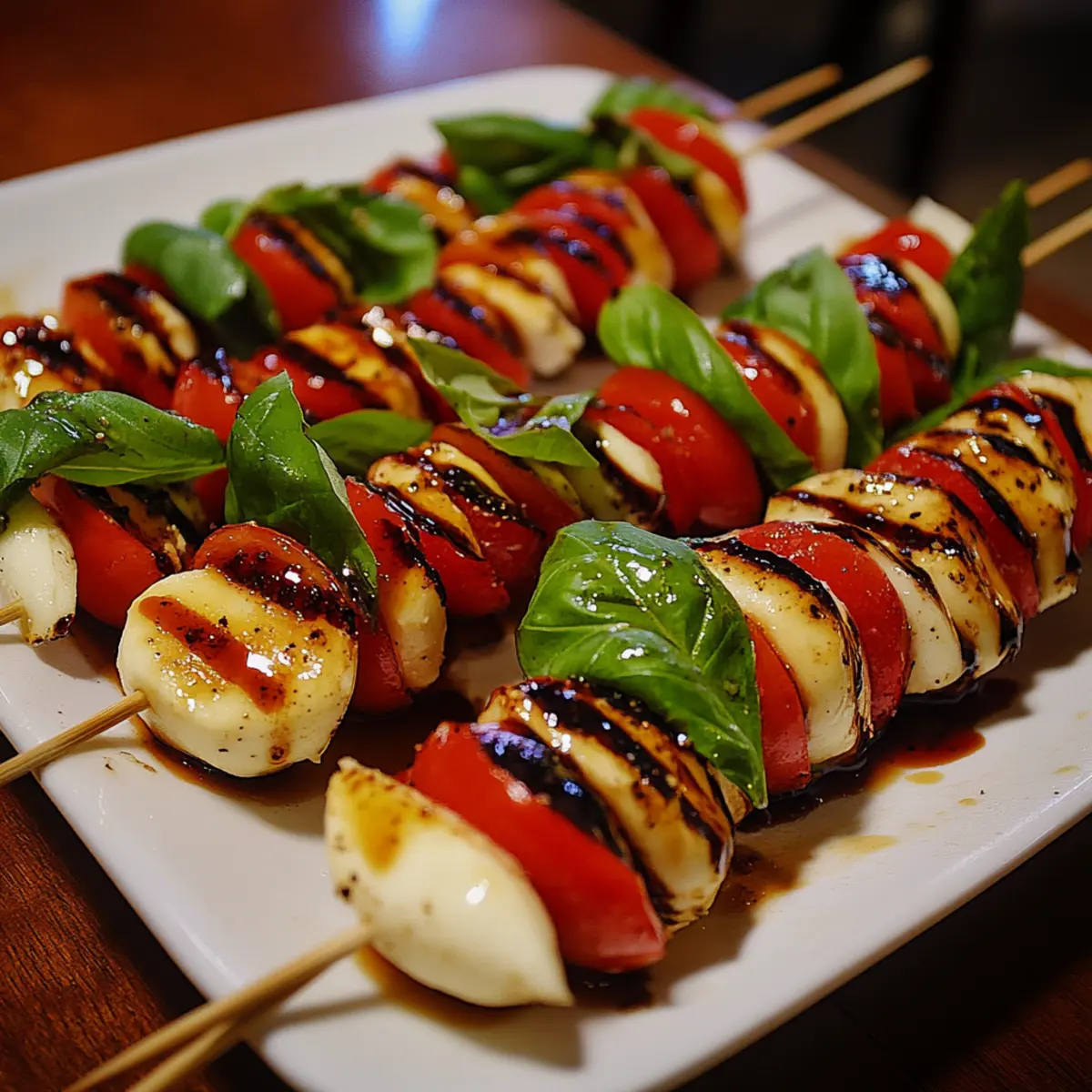 - Chill before serving: Refrigerate the assembled skewers briefly to keep the mozzarella firm and flavors meld beautifully.