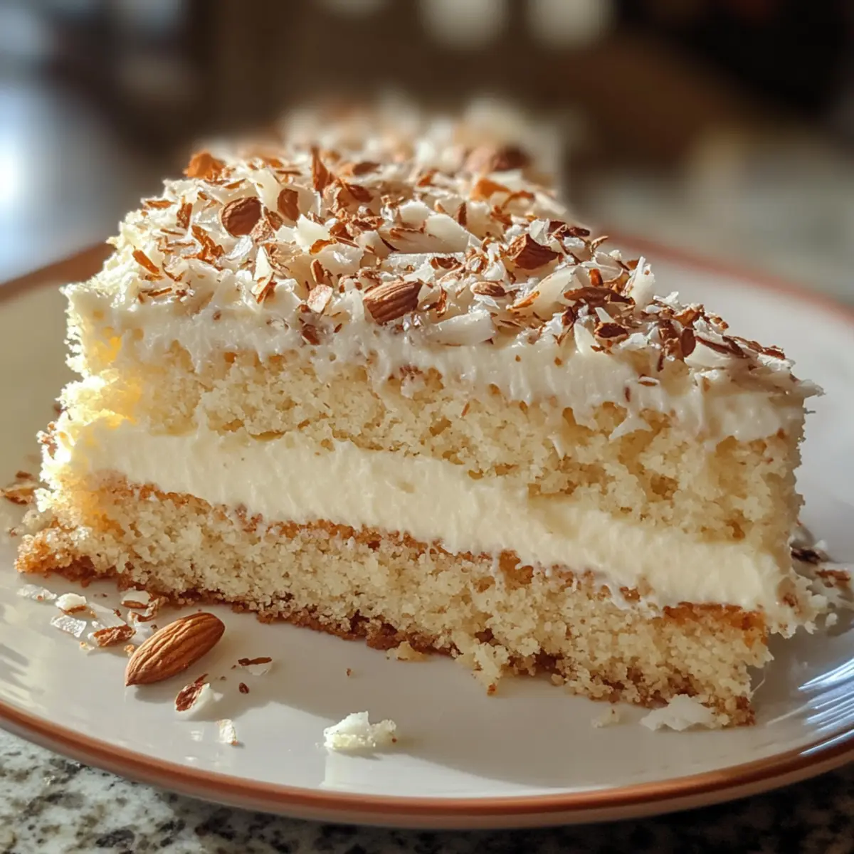 Moist, Dreamy Texture: The yogurt keeps this cake incredibly tender and soft. Tropical Coconut Flavor: Every bite offers a subtle, exotic sweetness that feels refreshing and unique. Nutty Crunch: Almonds add a delightful contrast in texture and depth. Effortlessly Easy: Minimal ingredients and straightforward steps make baking a breeze. Versatile Treat: Perfect for breakfast, coffee breaks, or charming desserts. Homemade Goodness: Ditch fast food and enjoy a wholesome, comforting homemade indulgence!