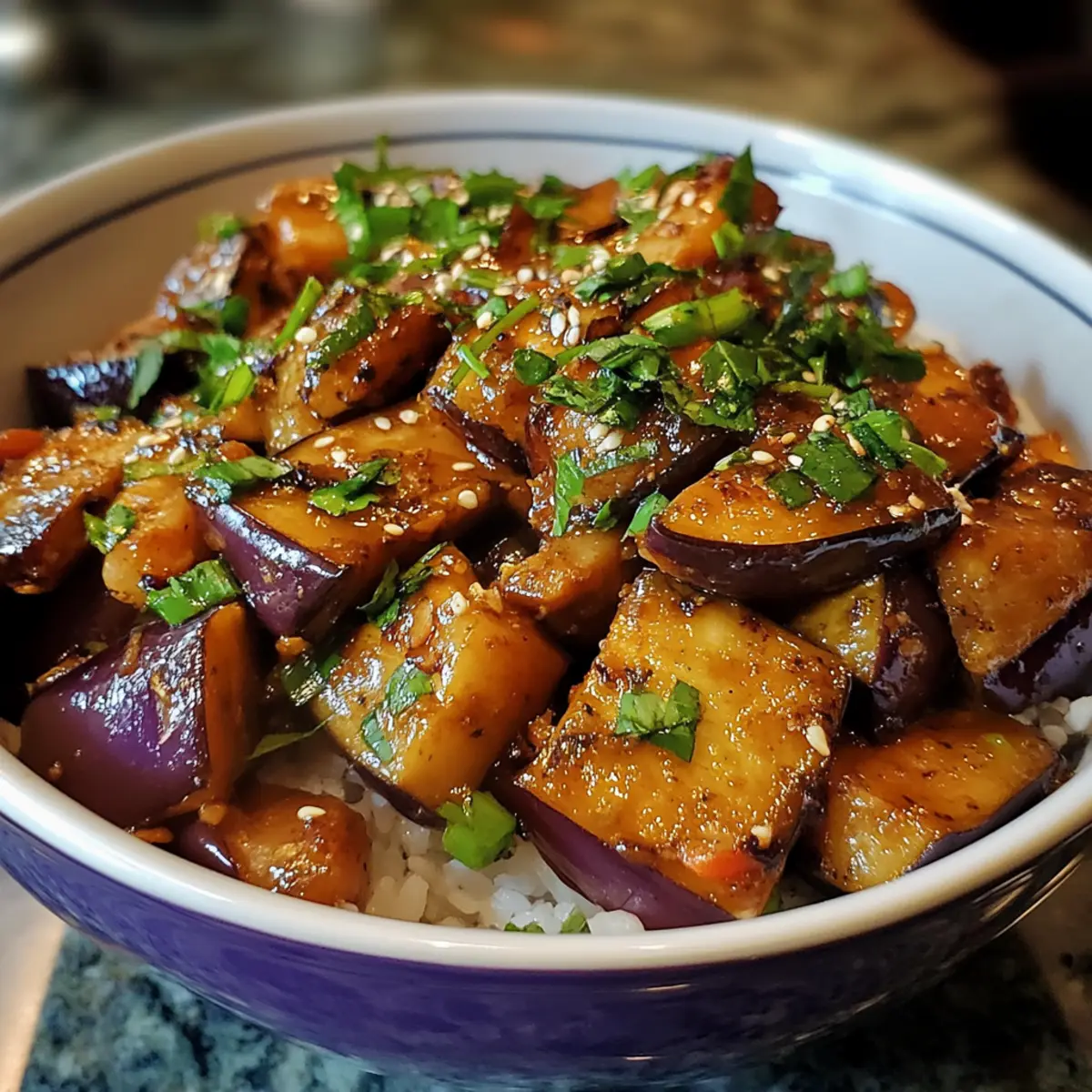 Protein Boost: Stir in some cubed tofu or cooked chicken for a heartier meal. Both options absorb the flavors beautifully, complementing the eggplant perfectly.