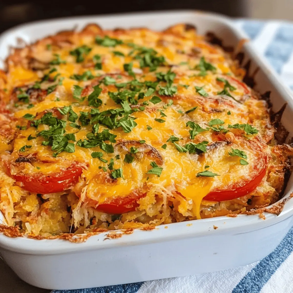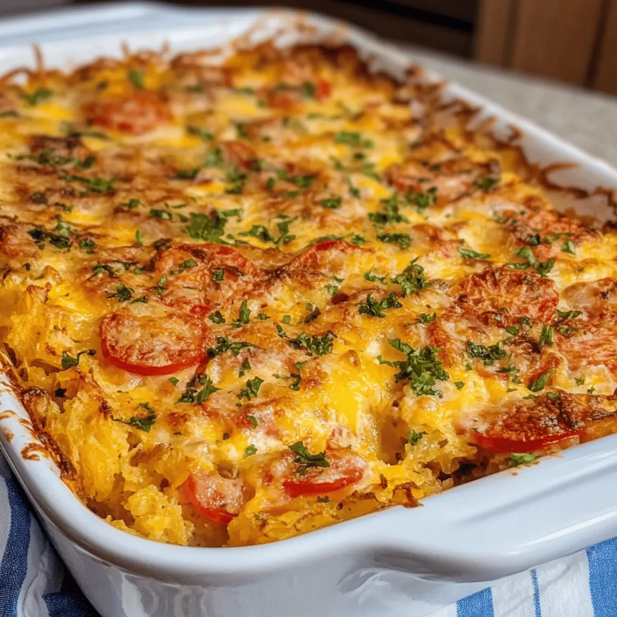 These Hash Brown Tomato Breakfast Casserole options are perfect for busy cooks looking to make breakfast easier! You can prep the casserole completely and refrigerate it up to 24 hours in advance, allowing the flavors to meld beautifully. Simply follow the assembly instructions, cover it tightly with plastic wrap, and store it in the fridge. When you’re ready to bake, remove it from the refrigerator and let it sit at room temperature for about 30 minutes before placing it in a preheated oven. To maintain the casserole’s delicious texture, avoid baking it directly from the fridge, as this could result in uneven cooking. Enjoy a homemade breakfast that is just as delightful as if it were fresh out of the oven!