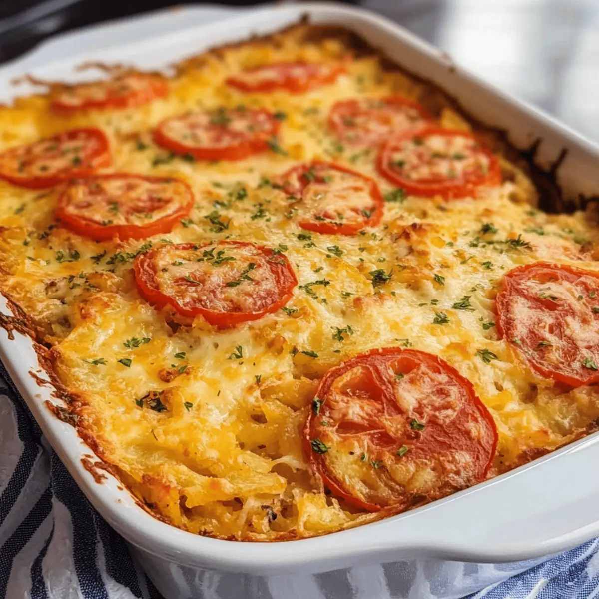 Simplicity meets flavor in this easy-to-make casserole that requires minimal prep. Versatility lets you customize it with your favorite veggies or proteins, making it perfect for any taste or occasion. Time-saving by prepping ahead, it’s ideal for busy mornings or feeding a crowd. Comfort food vibes with crispy hash browns, juicy tomatoes, and melty cheese that warm you up from the inside. Crowd-pleaser guaranteed, bringing homemade goodness to your table without the hassle of fast food.