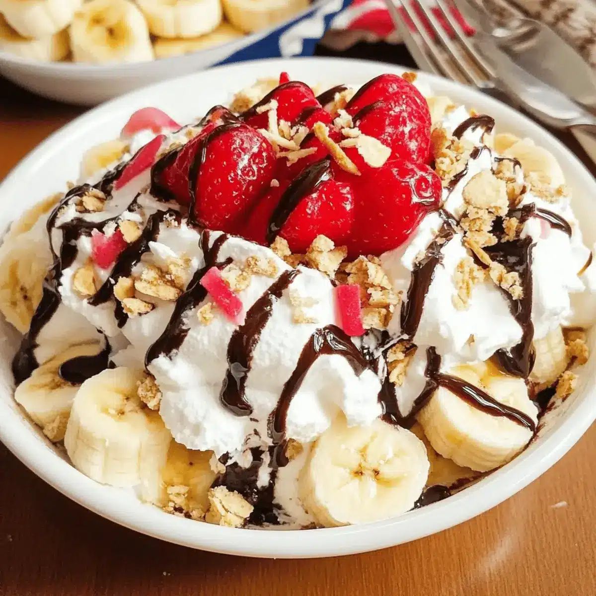 - Garnish: Sprinkle chopped nuts, crushed wafers, and top with a maraschino cherry for classic banana split flair.