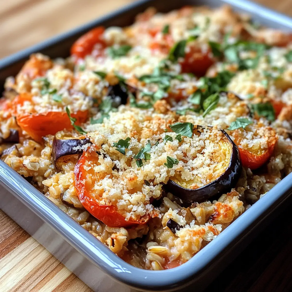 Easy Roasted Eggplant Tomato Farro Bake with Bold Mediterranean Flavors