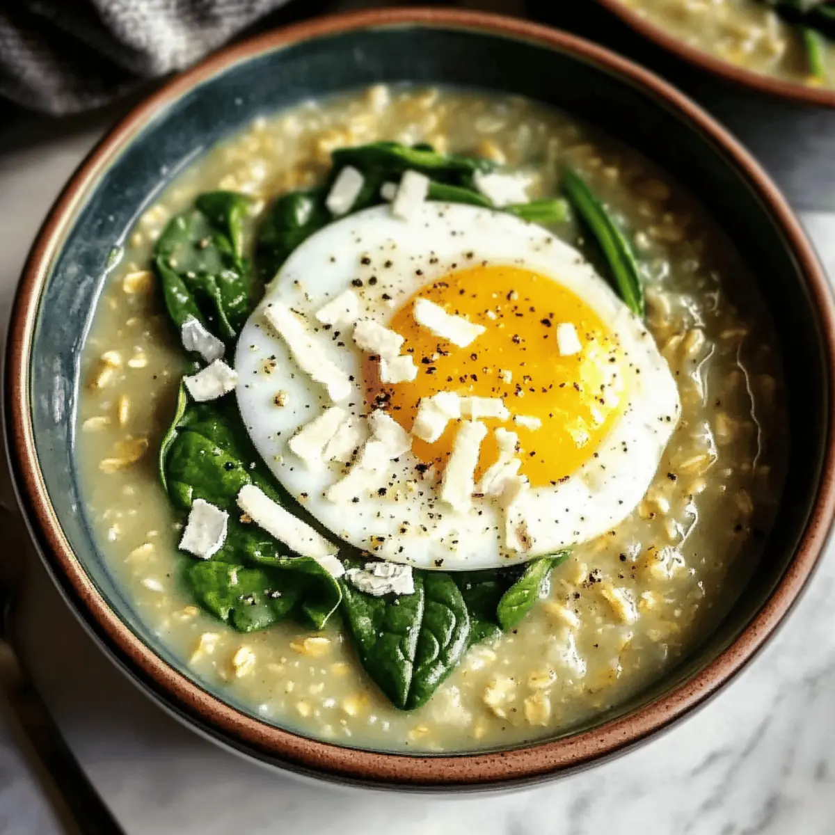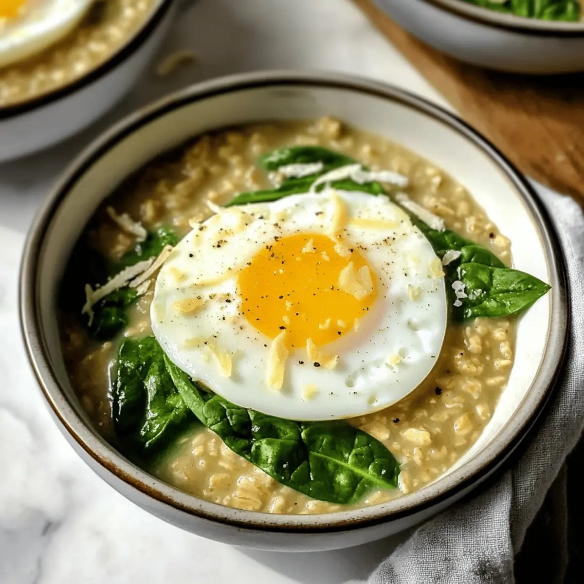 - Assemble: Divide the creamy oats into warmed bowls. Top each portion with wilted spinach, fried egg, and a sprinkle of optional cheese or red pepper flakes for extra punch.