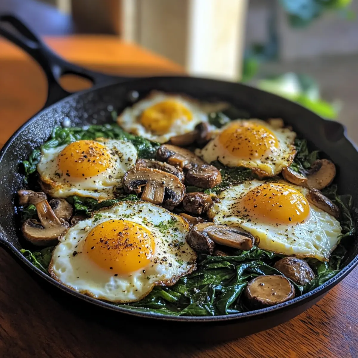 Simplicity at its best: This one-pan wonder saves time and cleanup, perfect for busy mornings. Flavor-packed: Earthy mushrooms and vibrant spinach create a mouthwatering, nutritious combo. Protein-rich: Eggs provide a fulfilling start that keeps you energized. Versatile: Customize with your favorite herbs or cheese to suit every mood. Colorful and comforting: Bright greens and golden eggs make breakfast feel special and inviting.
