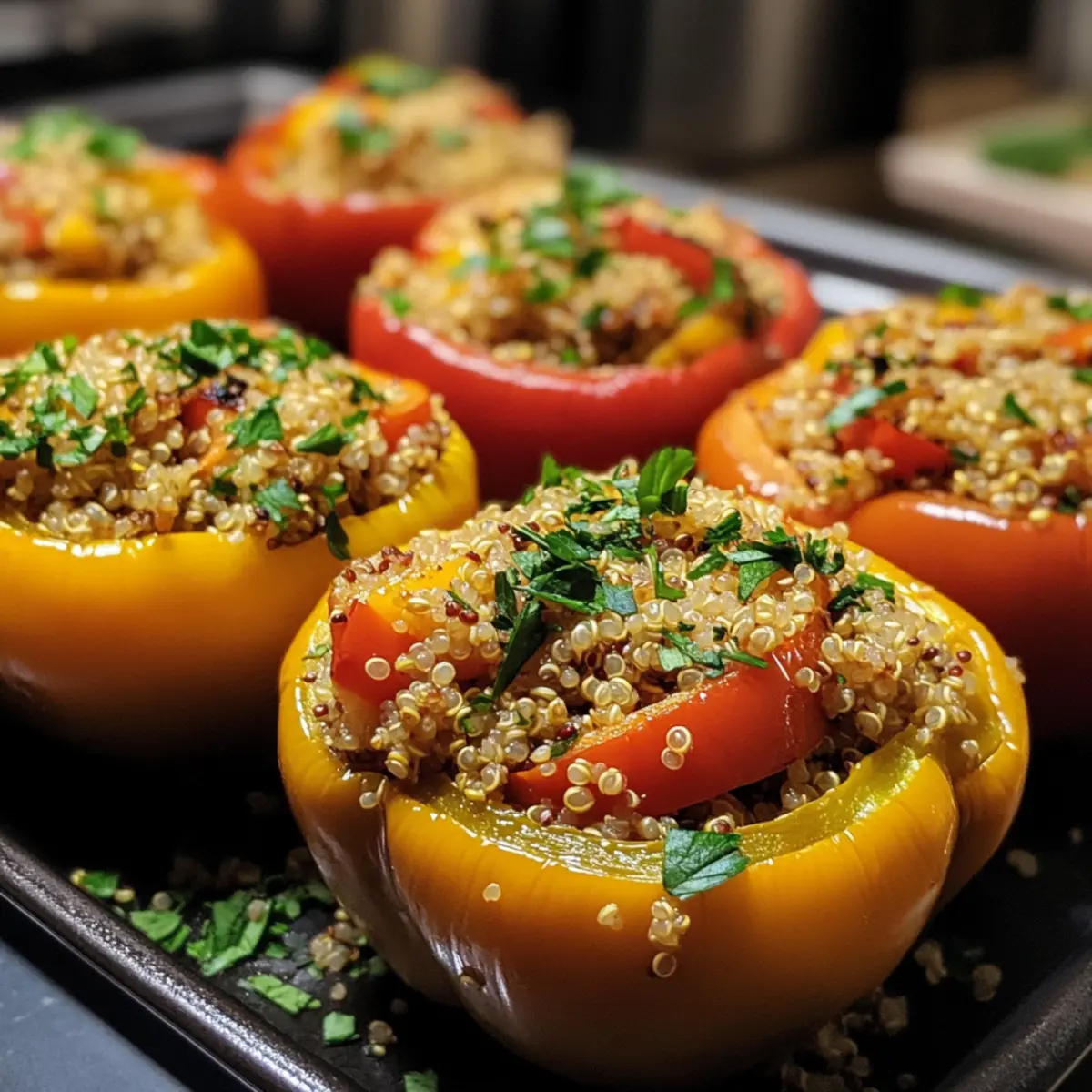 Vibrant and wholesome: This recipe packs colorful bell peppers with nutritious quinoa and fresh veggies for a meal that looks as good as it tastes. Effortlessly nutritious: Quick to prepare, it’s perfect for busy cooks craving a healthy homemade option. Flavorful blend: Aromatic herbs elevate every bite, delivering a satisfying, savory punch. Versatile: Customize with your favorite fillings or spice levels to suit any taste. Crowd-pleaser: Ideal for family dinners or entertaining guests who appreciate wholesome, delicious food.